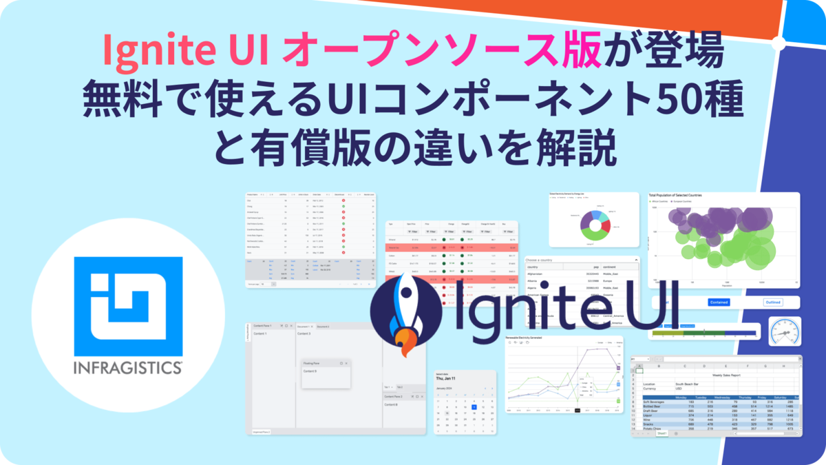こんな開発チームの声に応えるべく、Infragistics の UI コンポーネント「Ignite UI」で オープンソースの無償コンポーネント群が提供されるようになりました。