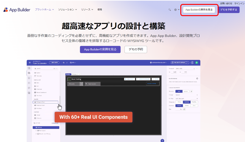 - ビジュアル アプリ ビルダー:プロダクト マネージャー、デザイナー、開発者、関係者向けの統合プラットフォーム。